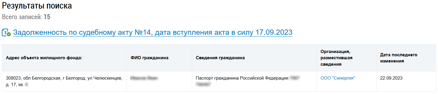 задолженности конкретного гражданина нажмите на кнопку «