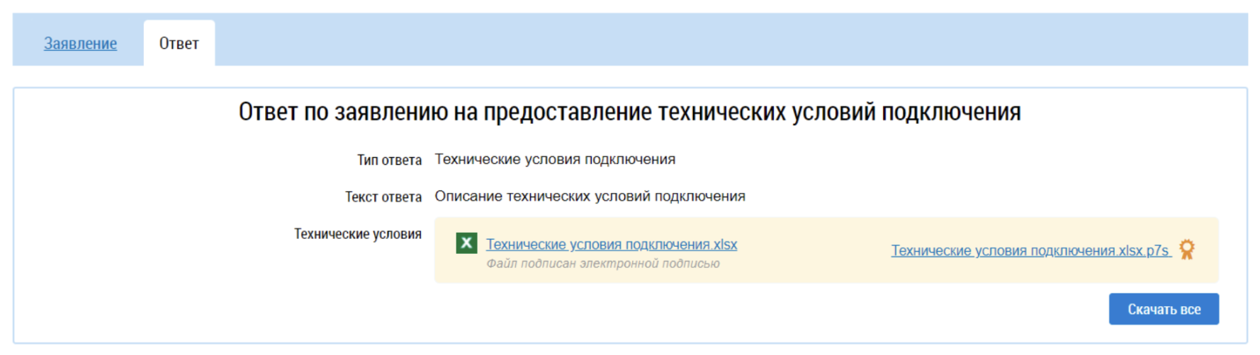 При открытии на просмотр заявлений в статусах В работе (добавлен ответ) и Отправлен ответ для просмотра доступна вкладка Ответ.