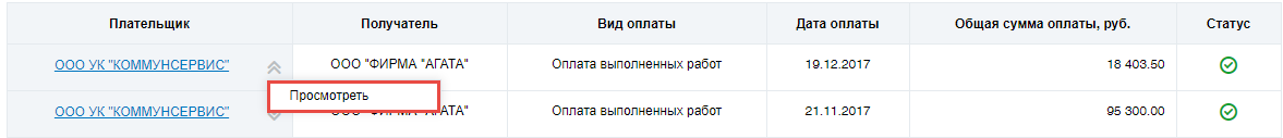 Для просмотра сведений об оплате выберите пункт контекстного меню оплаты Просмотреть.