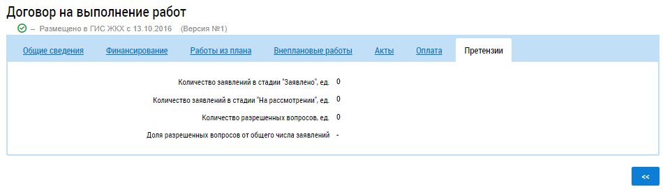 Для просмотра информации о претензиях перейдите на соответствующую вкладку в карточке договора