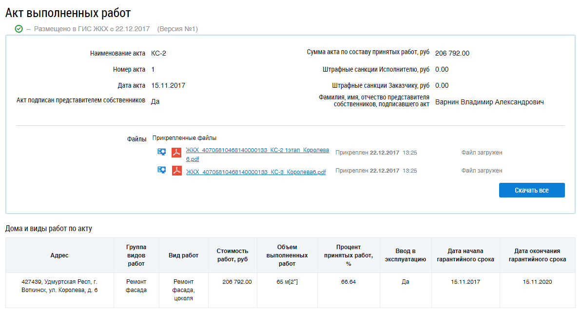 Для того, чтобы скачать файл акта нажмите на гиперссылку с его наименованием или на кнопку Скачать все.