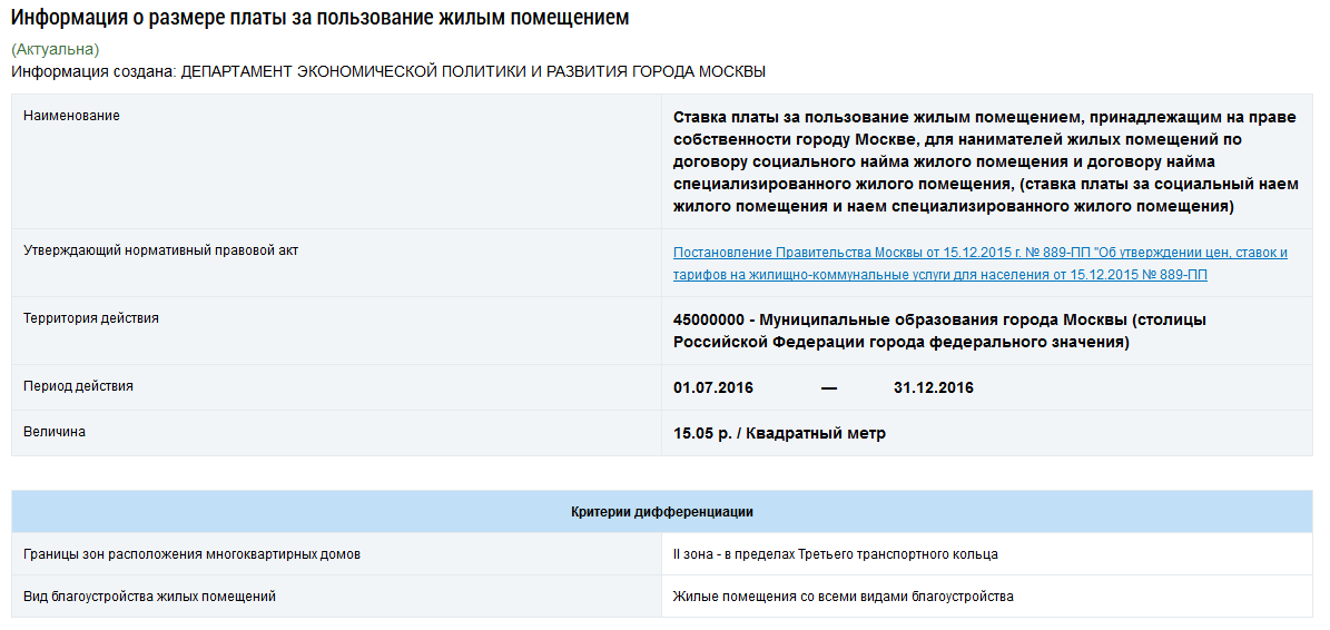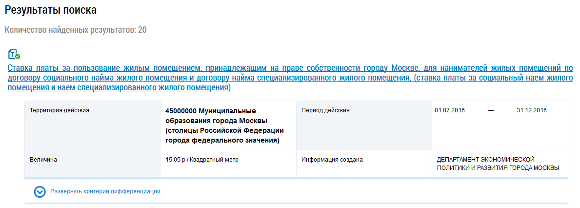 Поиск по реестру размера платы за пользование жилым помещением. Просмотр информации о размере платы.