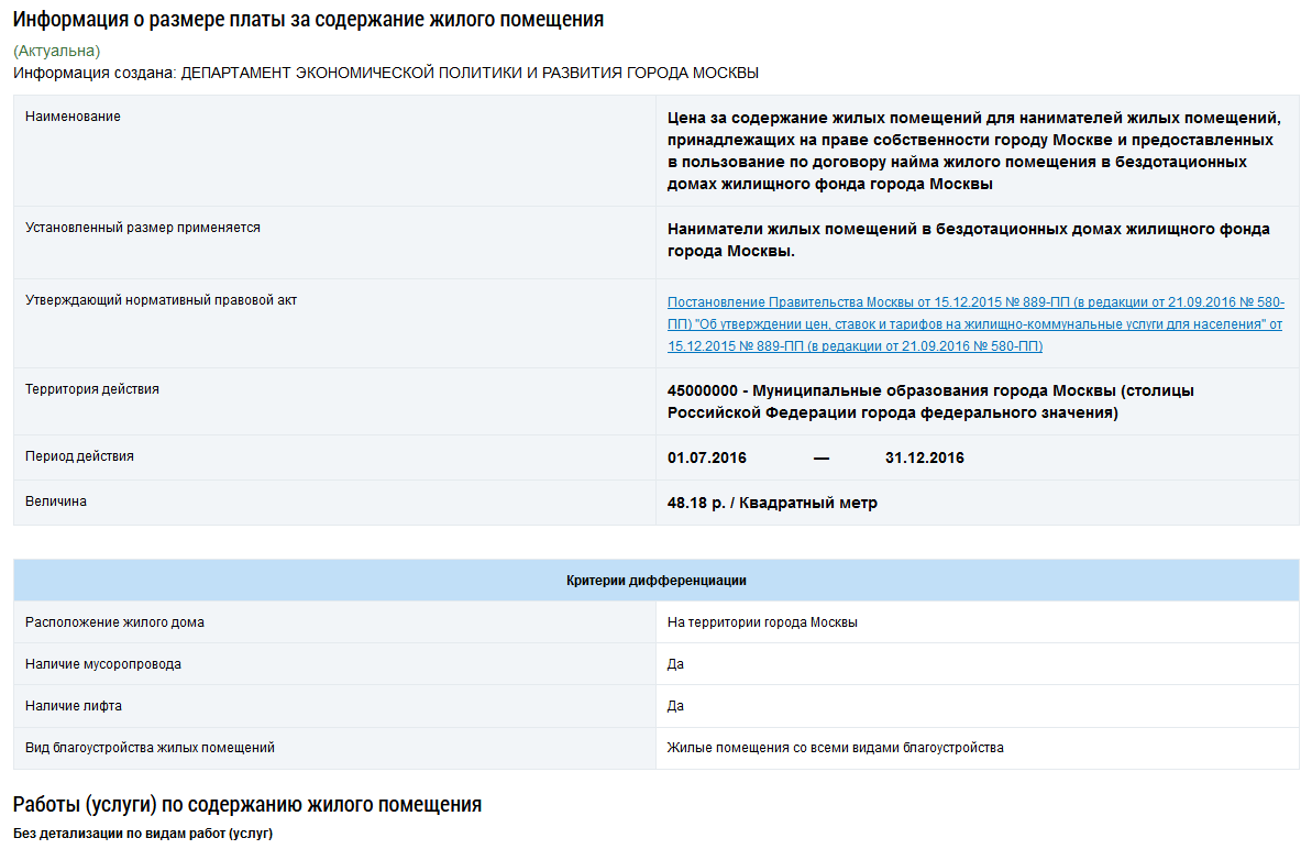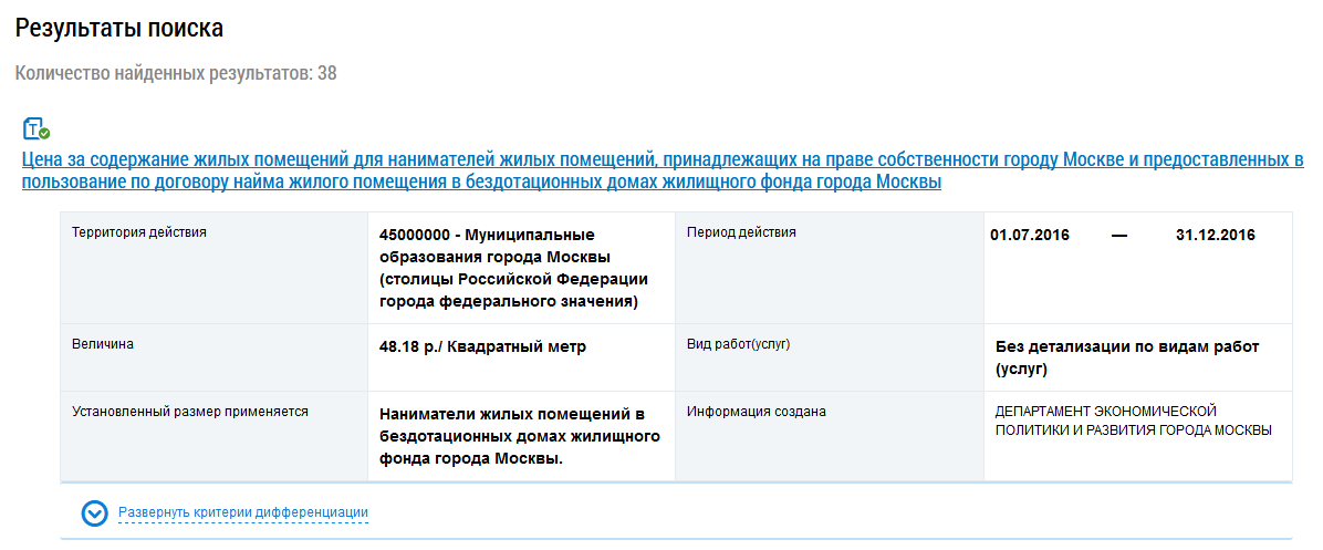 Поиск по реестру размера платы за содержание жилого помещения. Просмотр информации о размере платы.