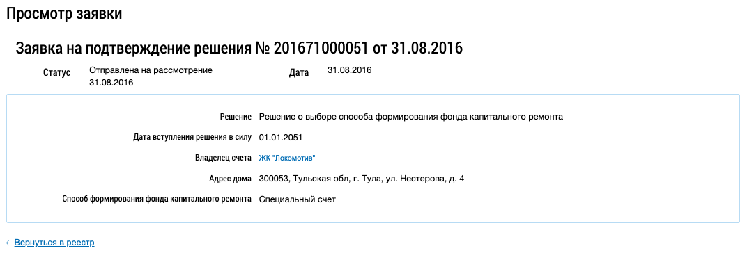 Просмотр заявки на подтверждение решения