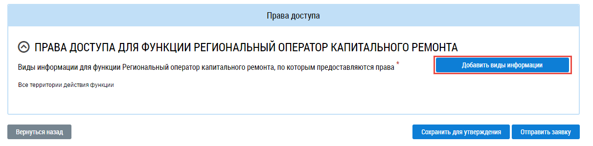 Рис. 3. Блок «Права доступа», кнопка «Добавить виды информации»