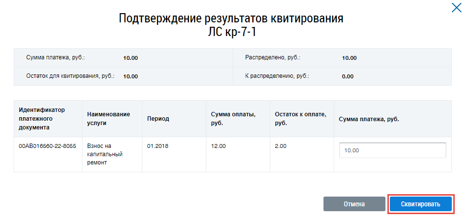 В отобразившемся окне Подтверждение результатов квитирования нажмите на кнопку Сквитировать.