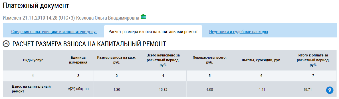 Для просмотра информации о расчетах размера взноса на капитальный ремонт перейдите на вкладку Расчет размера взноса на капитальный ремонт.