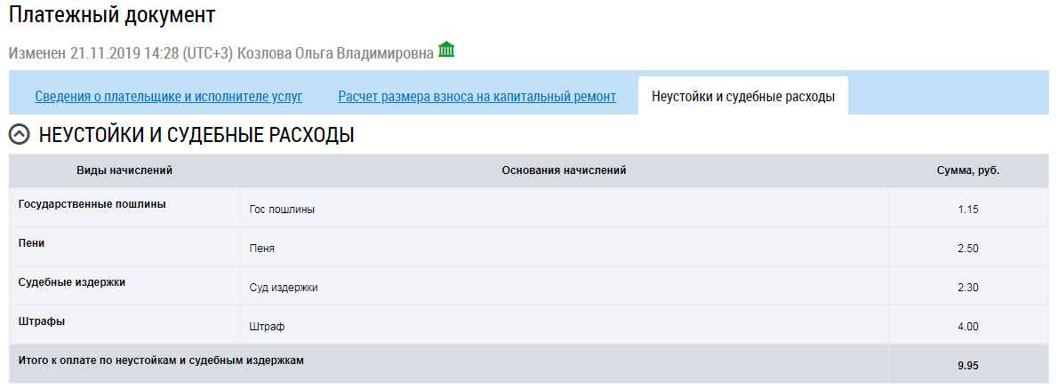 Отображается страница со сведениями о платежном документе на вкладке Сведения о плательщике и исполнителе услуг.