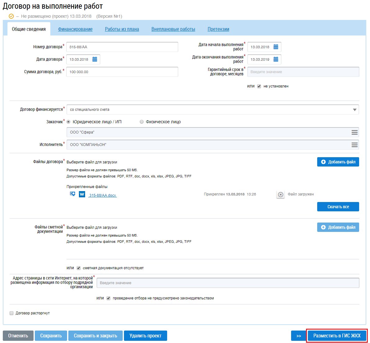 Размещение договора на выполнение работ по капитальному ремонту в ГИС ЖКХ