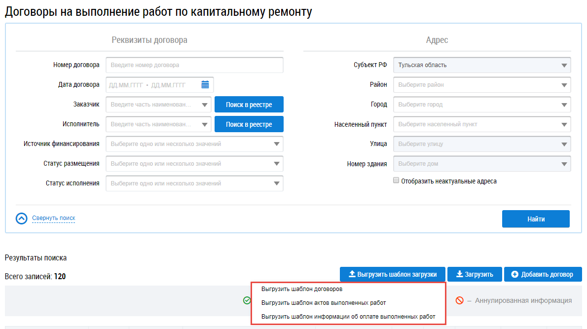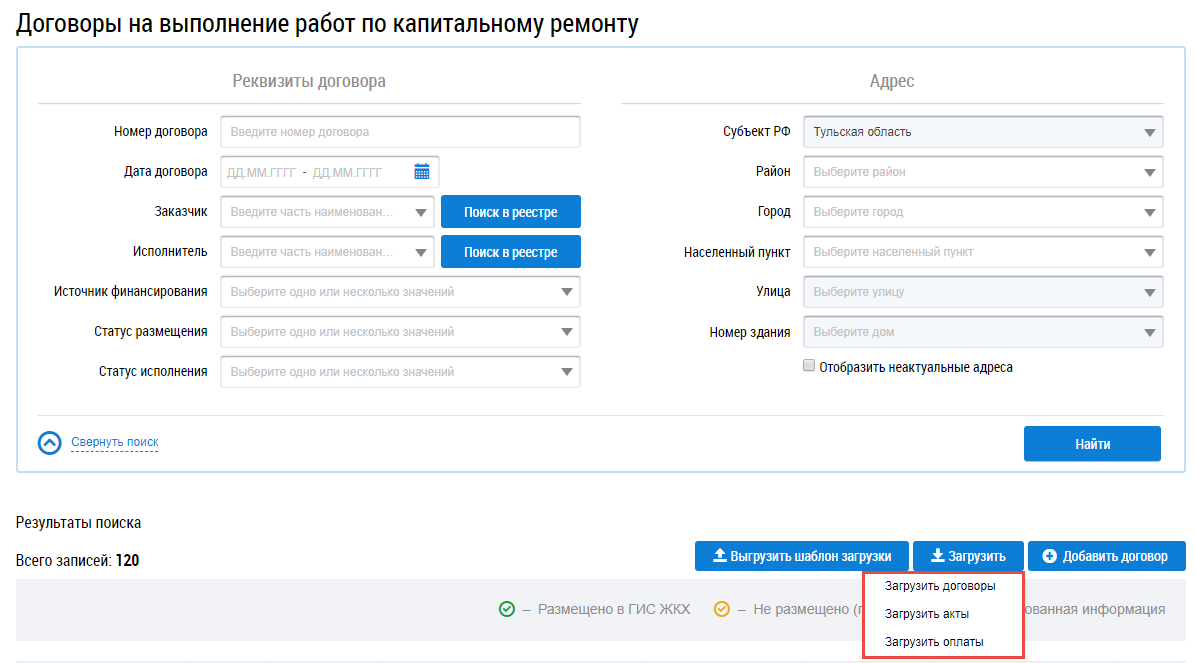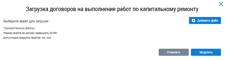 Загрузка договоров на выполнение работ по капитальному ремонту