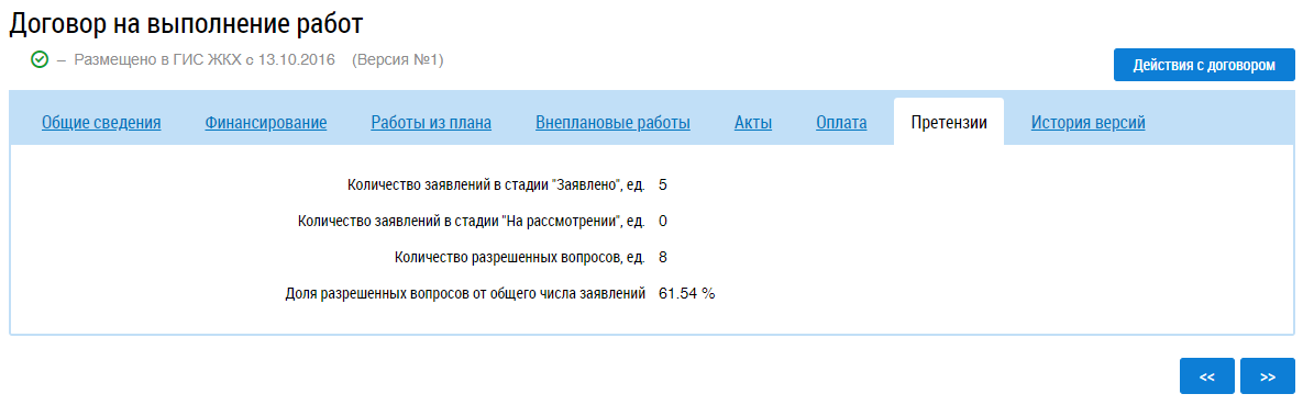 Для просмотра информации о претензиях перейдите на соответствующую вкладку в карточке договора