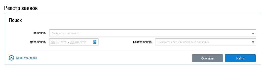 Отображается страница Реестр заявок.