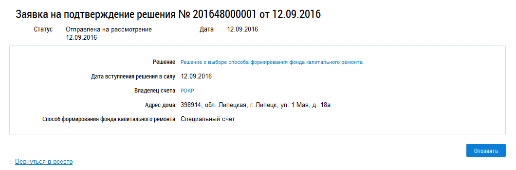 Просмотр заявки на подтверждение решения