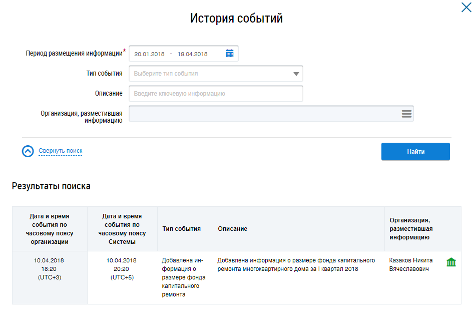 Для просмотра истории изменений выберите пункт контекстного меню информации о размере фонда История изменений (Контекстное меню информации о размере фондов капитального ремонта в статусе «Размещено в ГИС ЖКХ»).