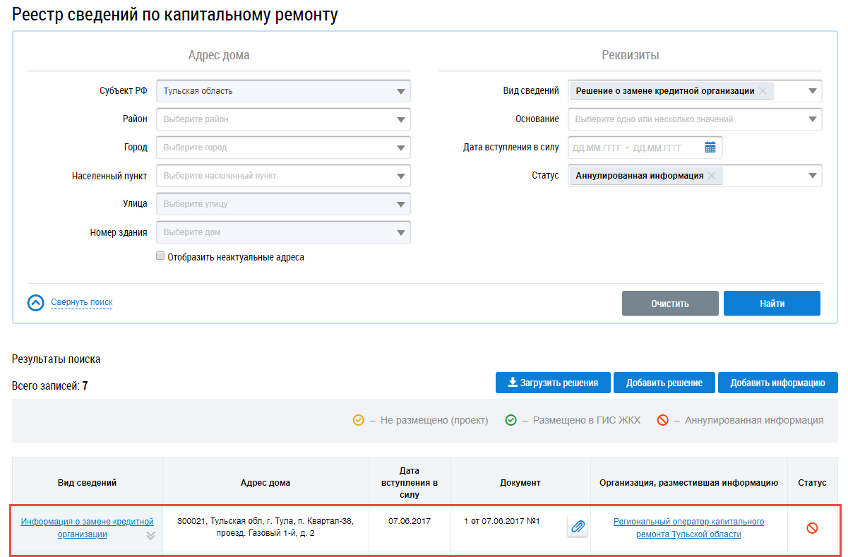 Информация переходит в статус Аннулированная информация.