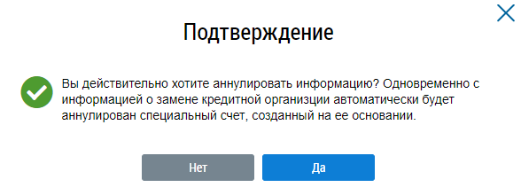 Аннулирование информации о замене кредитной организации