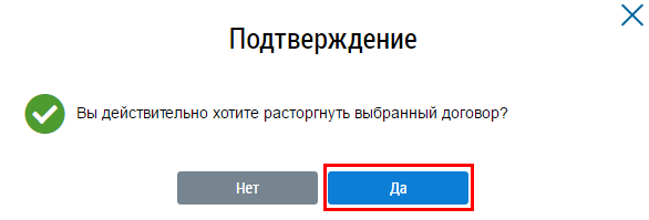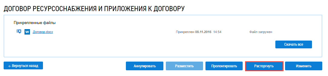 Операция расторжения доступна для договоров в статусе Размещен.