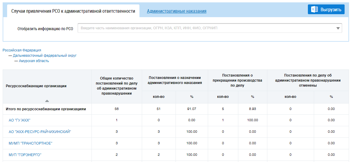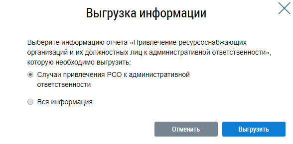 Данный раздел доступен после предоставления представителю организации прав доступа к отчету Привлечение ресурсоснабжающих организаций к административной ответственности. Для предоставления права доступа обратитесь к Администратору организации.