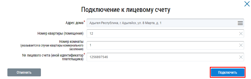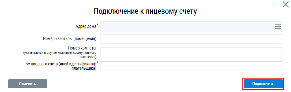 Чтобы подключить лицевой счет нажмите на кнопку Подключить лицевой счет (Страница «Управление лицевыми счетами». Кнопка «Подключить лицевой счет»).