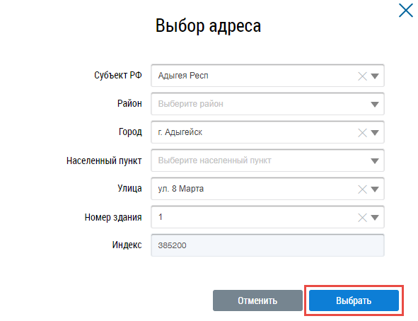 Для заполнения поля Адрес дома нажмите на пиктограмму «