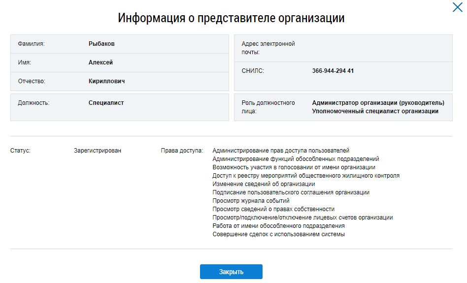 Рис. 1. Пункт «Просмотреть информацию о представителе организации»