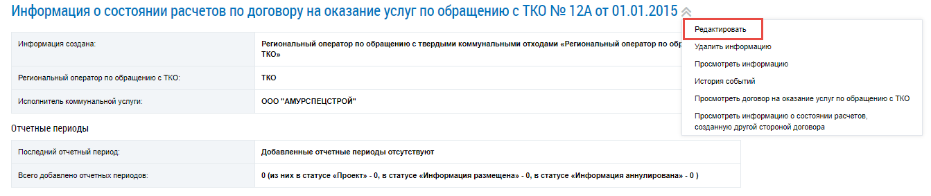 Для изменения информации о состоянии расчетов раскройте контекстное меню и выберите пункт Редактировать.