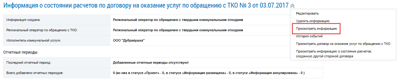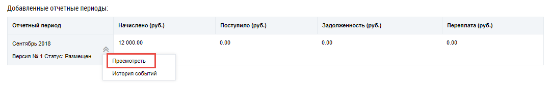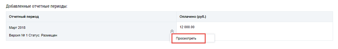 Для просмотра отчетного периода выберите пункт контекстного меню периода Просмотреть.