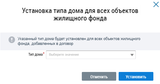 Отображается окно Установка типа дома для всех объектов жилищного фонда.