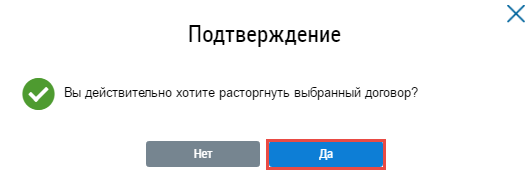 Выберите причину расторжения договора в выпадающем списке и нажмите на кнопку Расторгнуть.