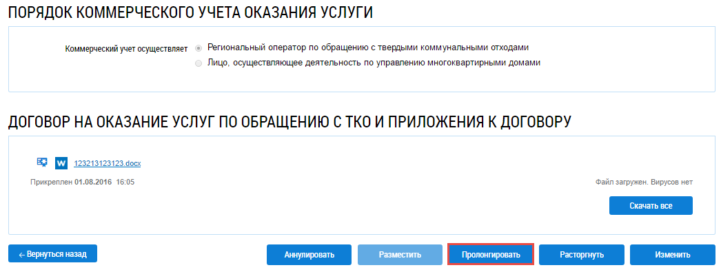 Пролонгация (изменение срока) договора на оказание услуг по обращению с ТКО