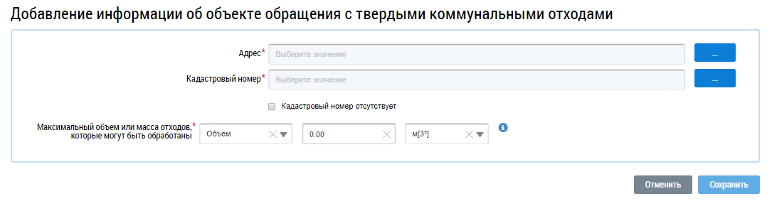Добавление информации об объекте обращения с твердыми коммунальными отходами.