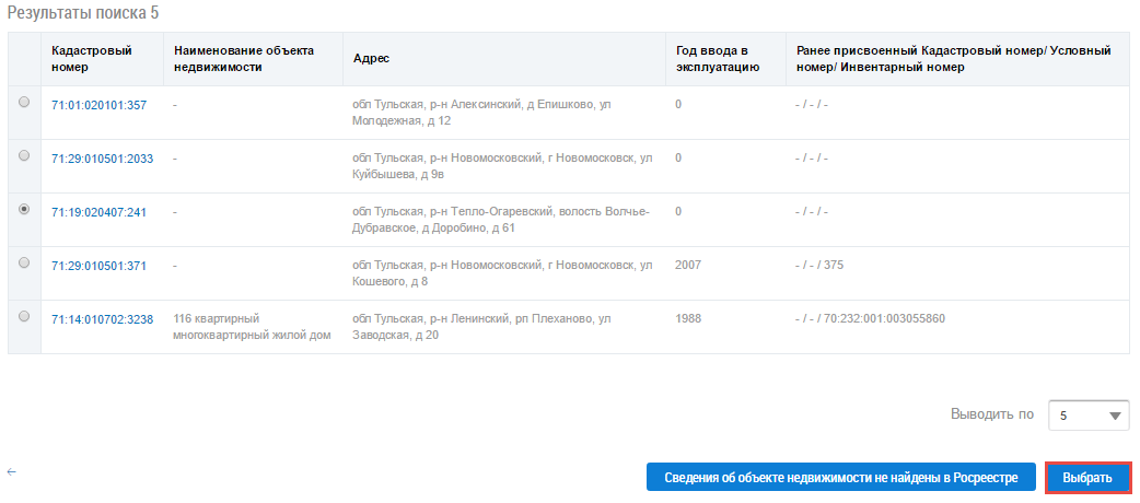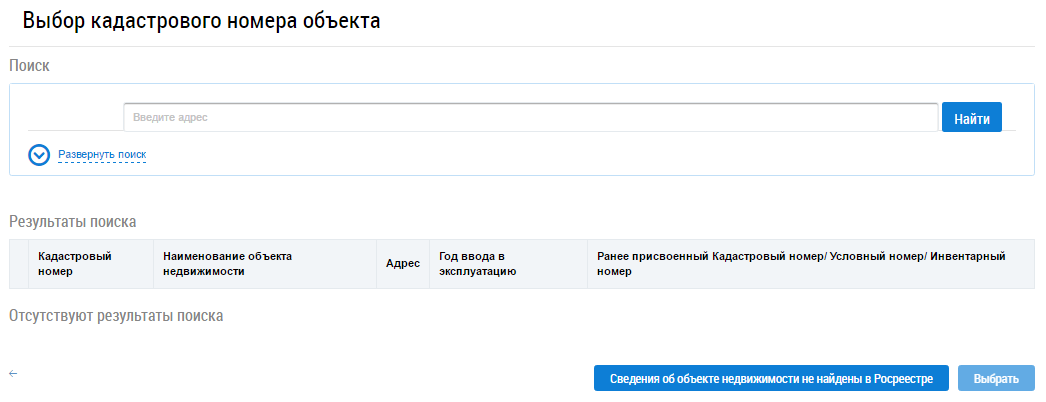 Отображается страница Выбор объекта из Государственного кадастра недвижимости.