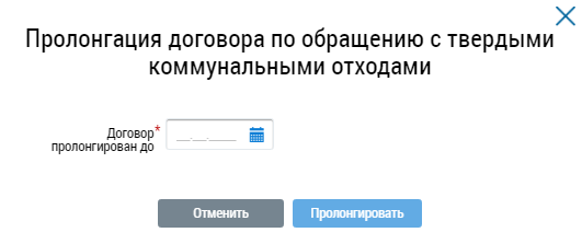 Отображается окно Пролонгация договора по обращению с твердыми коммунальными отходами.