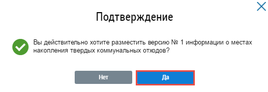 Операция размещения доступна для информации о местах накопления ТКО в статусе Проект.