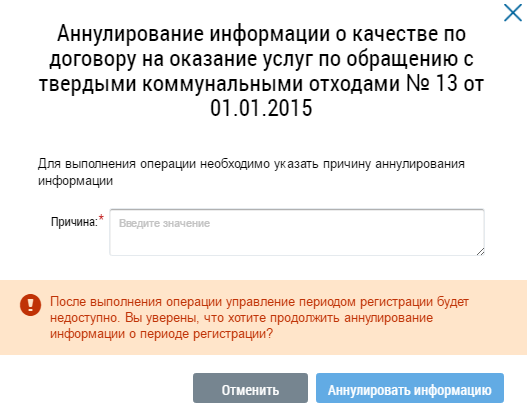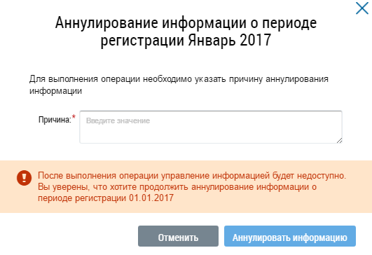Введите причину аннулирования информации и нажмите на кнопку Аннулировать информацию.