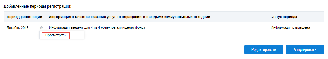 Для просмотра подробной информации о качестве оказания услуг по обращению с ТКО выберите пункт контекстного меню Просмотреть.