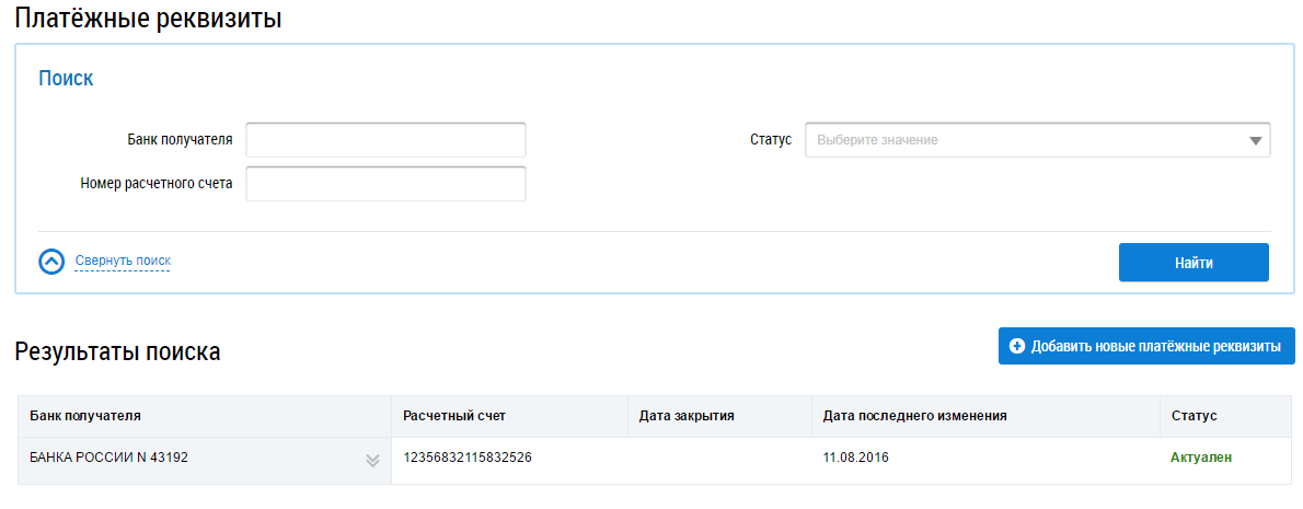 Просмотр и изменение платежных реквизитов доступны после предоставления представителю организации права доступа Совершение сделок с использованием системы, а также руководителю организации, получившему в ЕСИА статус Администратор организации в ГИС ЖКХ. Для представителя организации с ролью Уполномоченный специалист, которому предоставлено право доступа «Просмотр информации о платежных реквизитах», доступна возможность просмотра информации о платежных реквизитах организации.