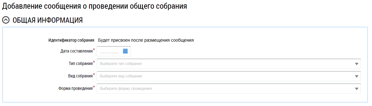 Отображается страница Добавление сообщения о проведении общего собрания собственников.