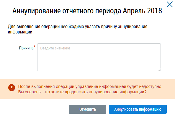 Для аннулирования необходимо указать причину. После этого нажмите на кнопку Аннулировать информацию.