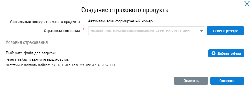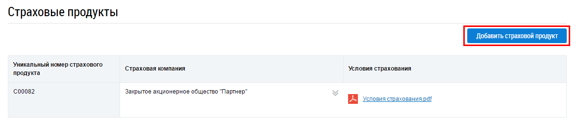 Чтобы добавить страховой продукт, нажмите на кнопку Добавить страховой продукт.