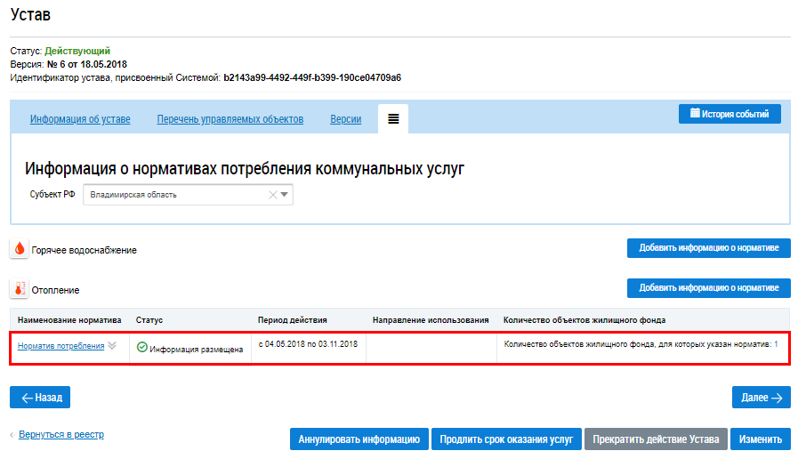 Статус норматива потребления коммунальных услуг меняется на Информация размещена.