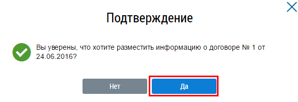 Подтвердите действия по размещению информации, нажав на кнопку Да.