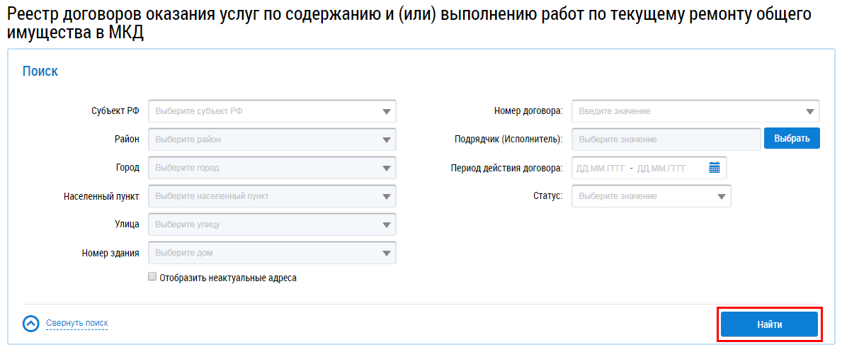 Поиск договора оказания услуг по содержанию и (или) выполнению работ по текущему ремонту общего имущества в МКД