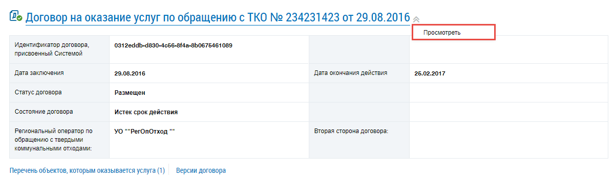 Просмотр договоров на оказание услуг по обращению с твердыми коммунальными отходами