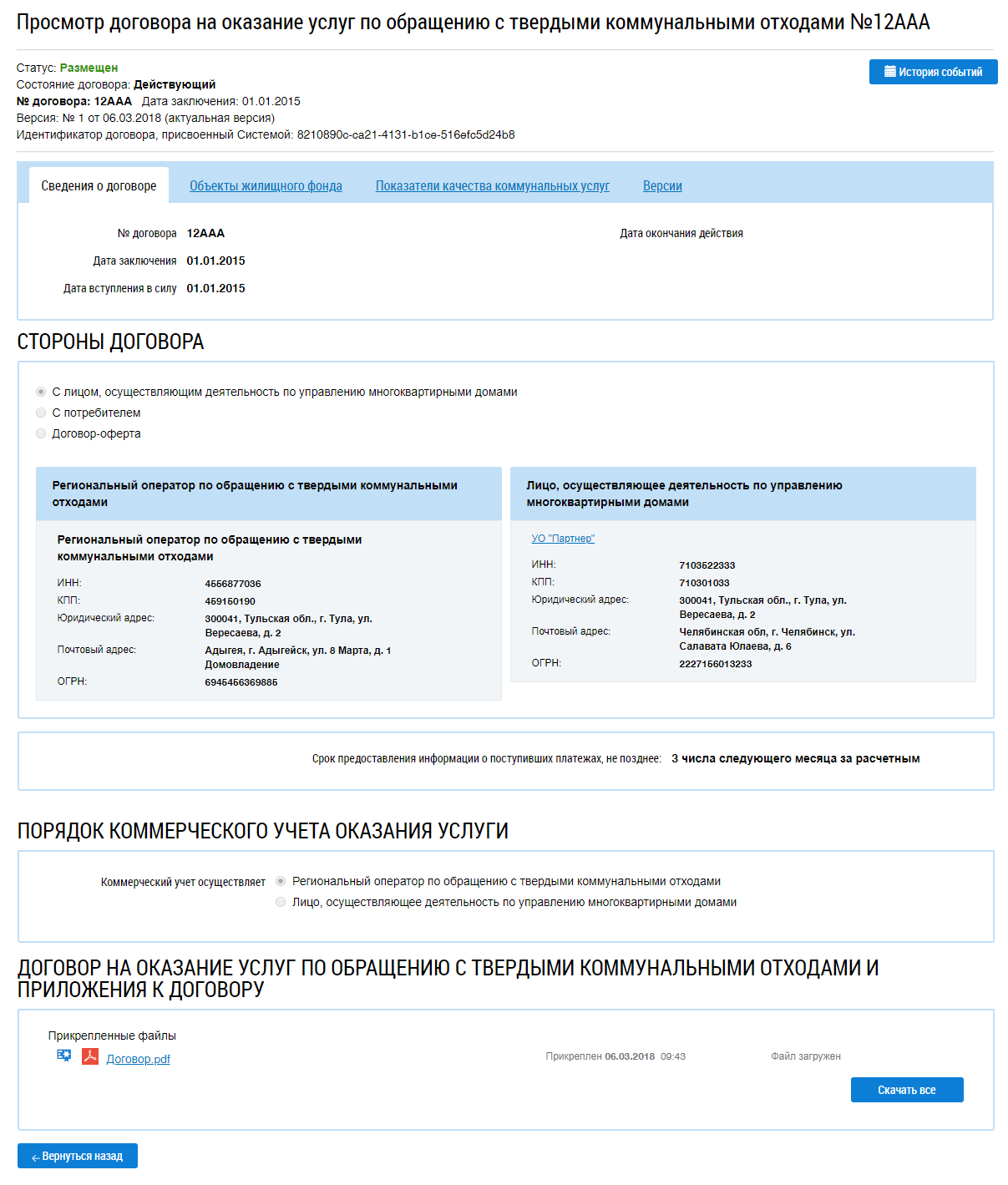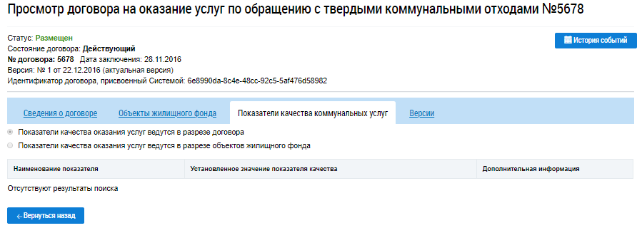 Отображается страница Просмотр договора на оказание услуг по обращению с твердыми коммунальными отходами.