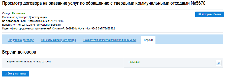 Для просмотра версий договора на оказание услуг по обращению с ТКО перейдите на вкладку Версии.