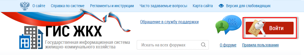 Для входа на Форум ГИС ЖКХ перейдите на главную страницу форума и нажмите на кнопку Войти в верхней части страницы.