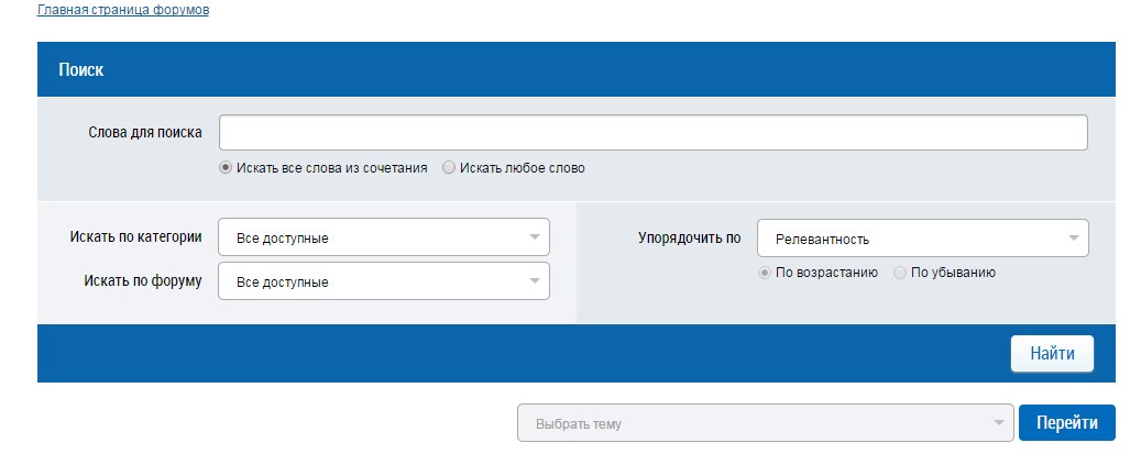 Для расширенного поиска по Форуму нажмите на пункт Поиск в верхнем горизонтальном меню.