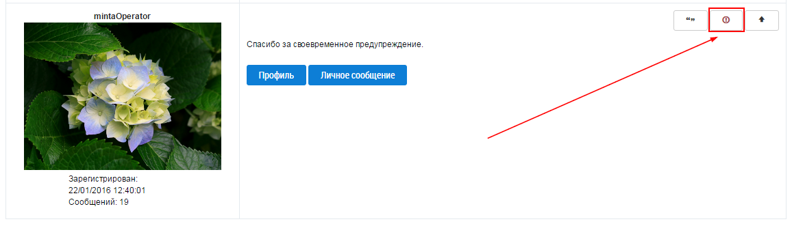 Для отправки жалобы модератору на сообщение другого пользователя нажмите на кнопку Пожаловаться модератору в блоке этого сообщения.