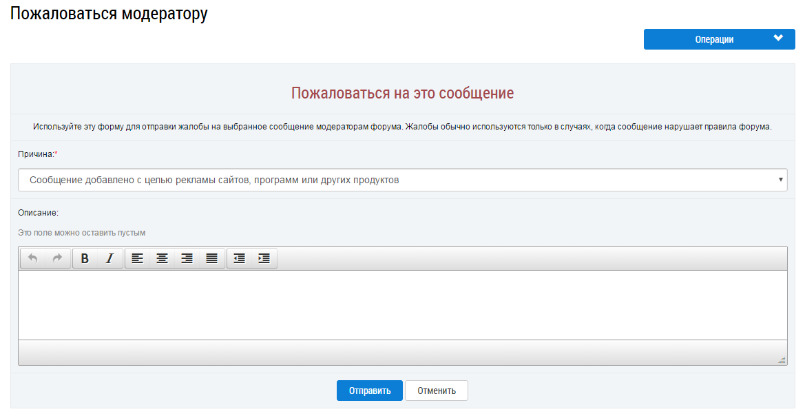 Отправка жалобы модератору